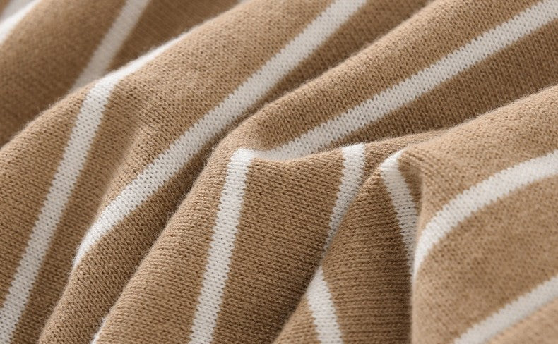 • Classic round neck with striped design